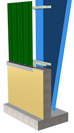 Sección constructiva de un cerramiento con panel sándwich in situ